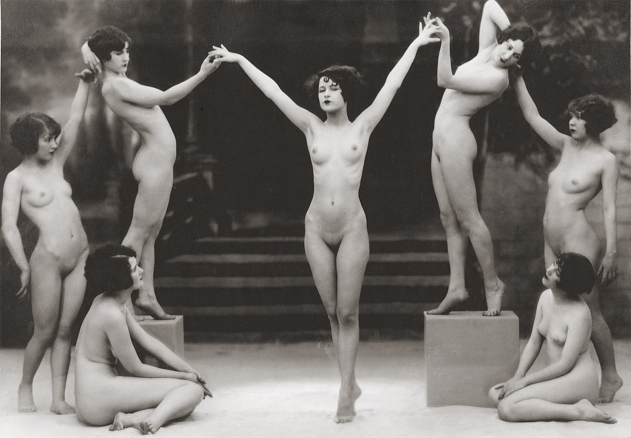 Naked women on the retro stage