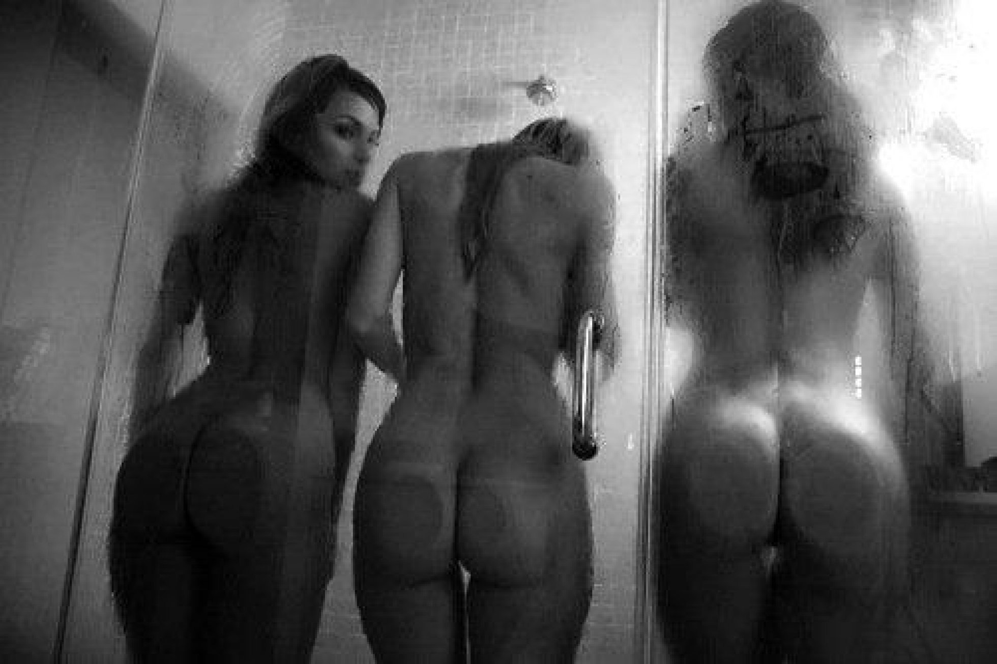 Wet girls nude behind glass