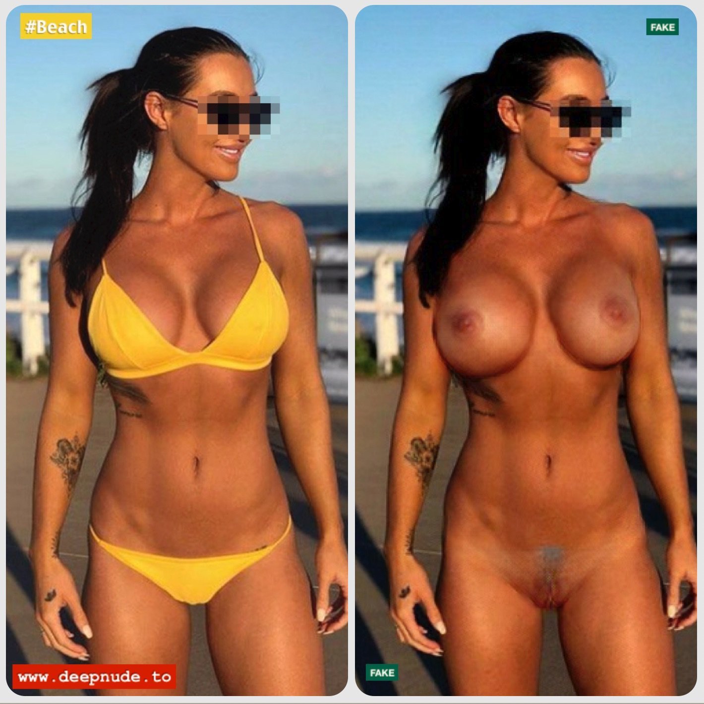 Naked and dressed in a swimsuit