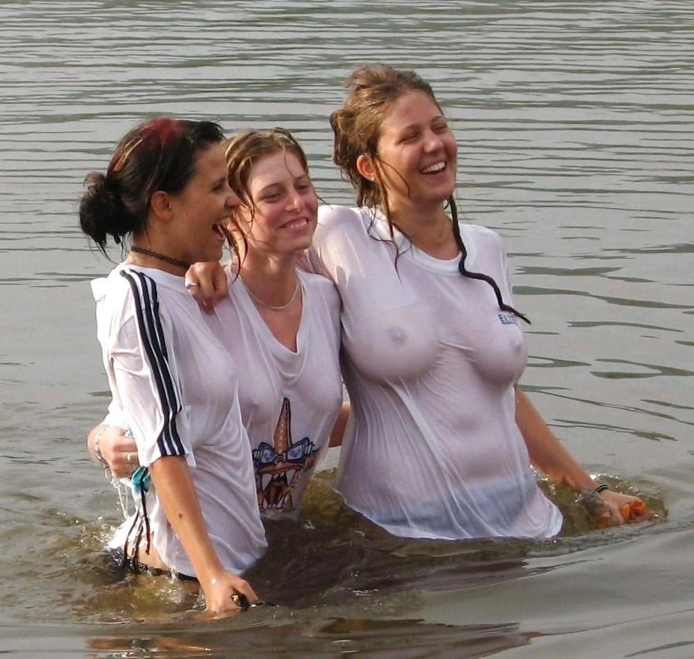Naked girls in wet shirts