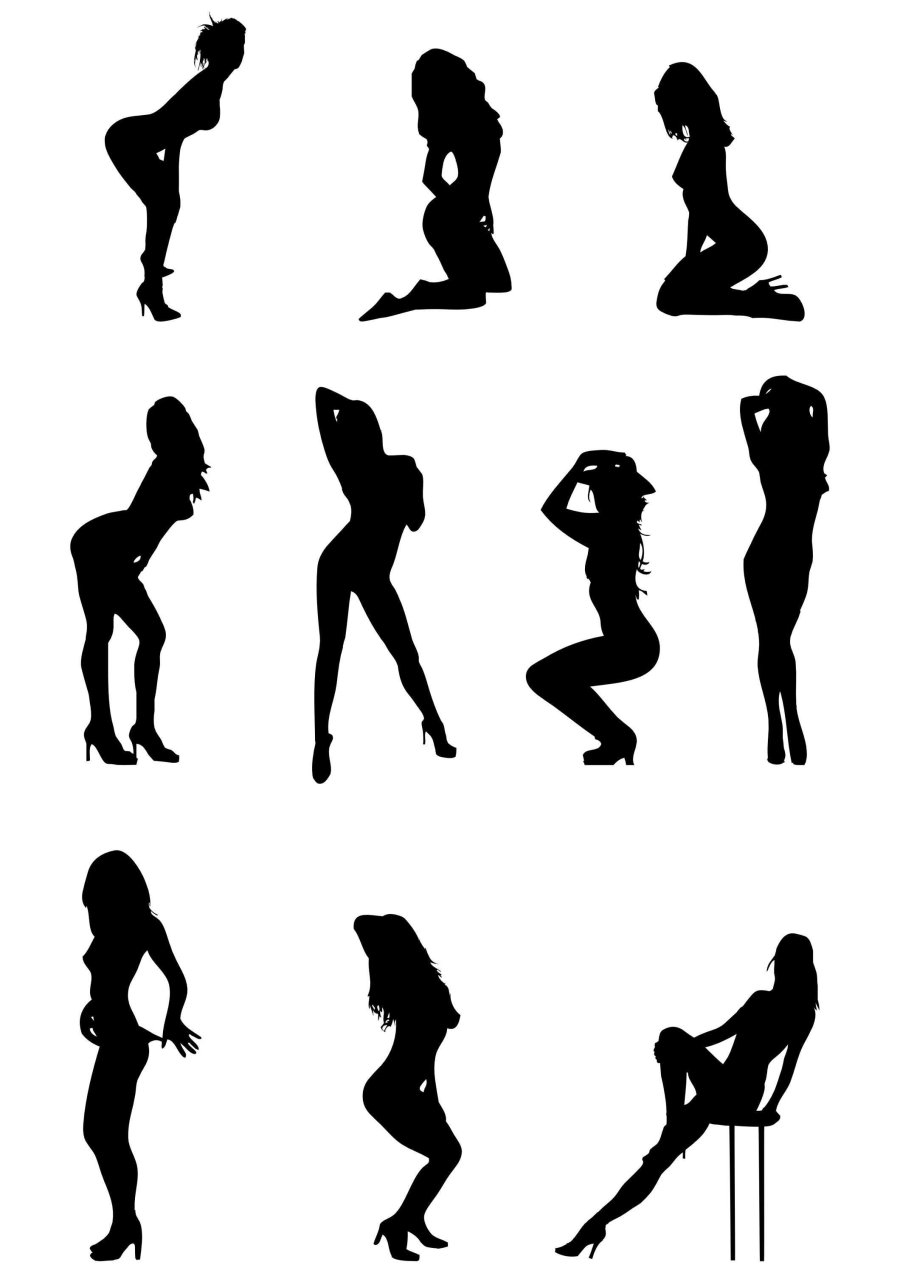 Girl in different poses silhouette